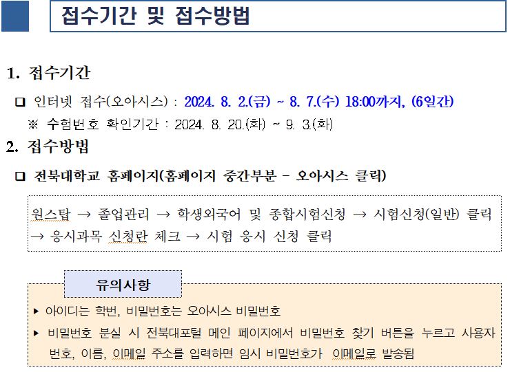 2024년도 후반기 일반대학원 외국어시험 및 종합시험 실시 계획 안내