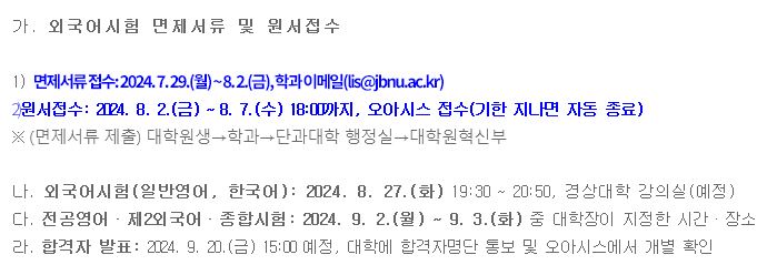 [2024년도 후반기 일반대학원 외국어시험 및 종합시험 실시 계획 안내]
